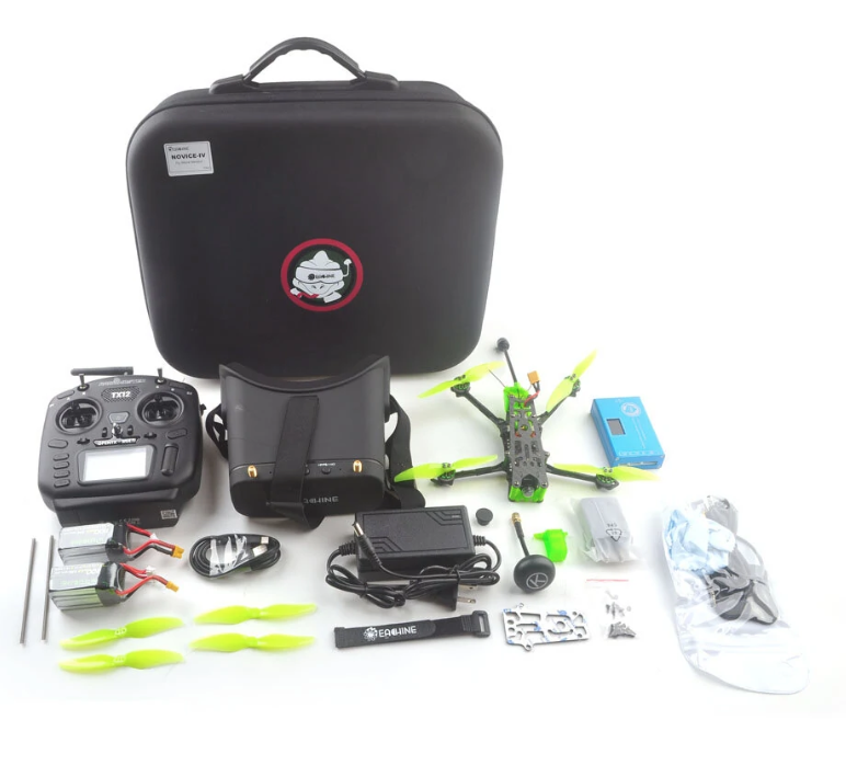 Bei dem Novice IV Bundle erhält man ein bereits perfekt abgestimmtes FPV Racing Drohnen Set um knappe 560€. Die Novice-IV Drohne ist bereits an Ihr Funkgerät gebunden und auf den richtigen Videokanal mit der FPV Brille abgestimmt. Auch die GPS Rescue Funktion ist sehr nützlich und ist out of the box aktiviert. Das Bundle ist quasi gleich ein „fly more“ Paket mit zusätzlichen Akkus und nützlichen Ersatzteilen :). Mehr zu diesem sehr guten Ready to Fly FPV Drohnen Set bei Banggood*.
